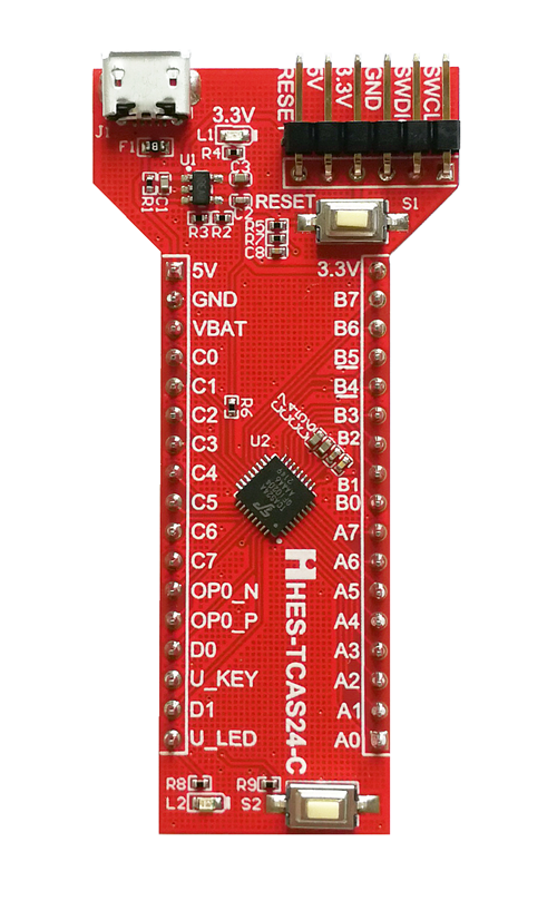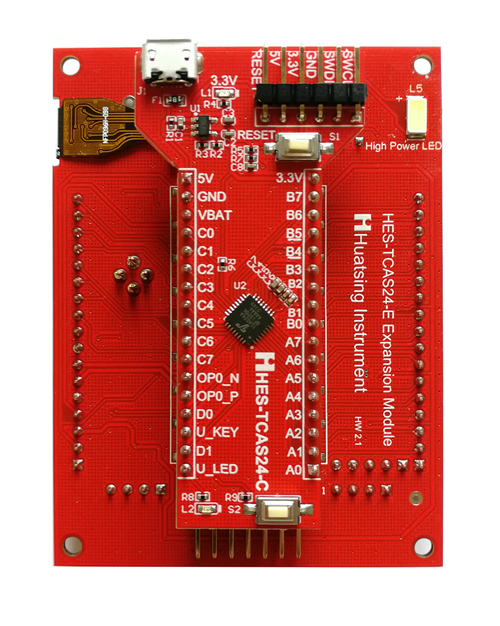 HES-TCAS24-Kit信號鏈MCU實驗套件以上海泰矽微電子有限公司的TCAS24A信號鏈MCU芯片為核心CPU,由核心板HES-TCAS24-C(簡稱C板)與擴展板HES-TCAS24-E(簡稱E板)兩個模塊構成。TCAS24A信號鏈微控制器是國內研發制造,具有自主知識產權的基于32位ARM Cortex-M0內核及豐富模擬外設及數字外設資源的高新能信號鏈SoC芯片。該套件不但可以完成MCU、數字電路、模擬電路等實驗項目,還可以配合DCLK-1000/2000、HA-EDA01等實驗套件使用,拓展實驗領域。同時HES-TCAS24-Kit套件小巧靈活、功能強大,適合學生在宿舍或家中進行一些科技創新、電設比賽使用。
