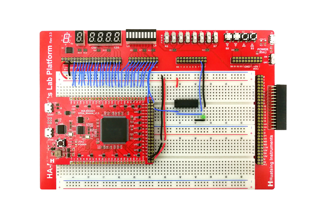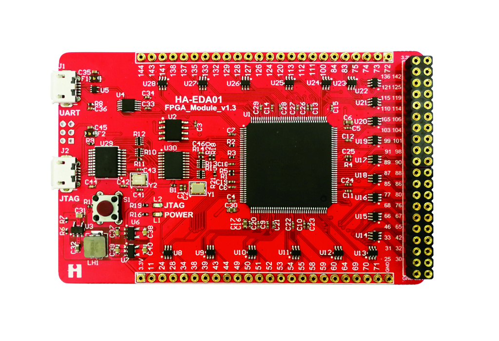 華清科儀與清華大學(xué)聯(lián)合推出的HA-EDA01 FPGA模塊既可以單獨(dú)使用,也可以與DCLK-1000/2000數(shù)字電路實(shí)驗(yàn)套件配合使用,能夠完成眾EDA實(shí)驗(yàn)項(xiàng)目,滿足了數(shù)字電路實(shí)驗(yàn)中可編程器件應(yīng)用單元教學(xué)要求。HA-EDA01 FPGA模塊核心為ALTERA Cyclone IV芯片,芯片的大部分IO都開放給用戶使用且都加了保護(hù)芯片,解決了學(xué)生實(shí)驗(yàn)時誤操作容易造成主芯片損壞的問題。HA-EDA01 FPGA模塊上集成了板載下載器,UART串行接口等,使用起來靈活方便。